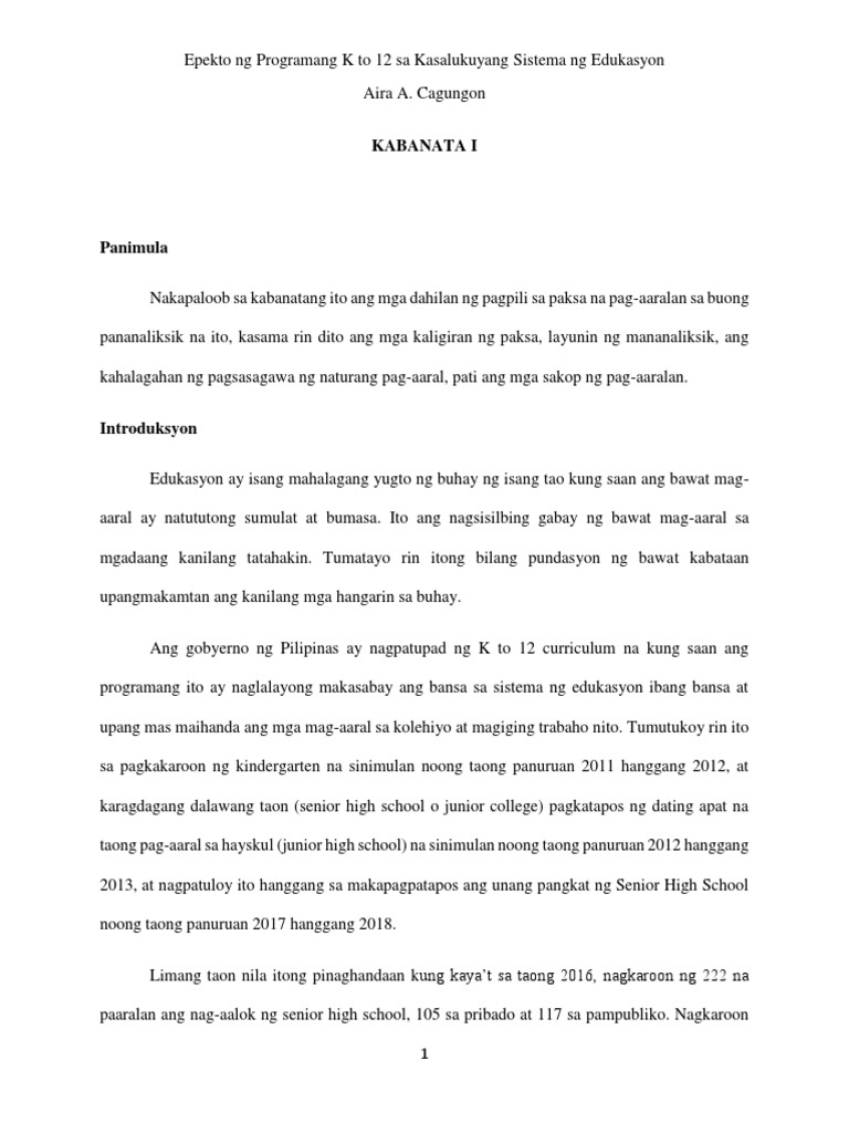 Doc Epekto Ng K 12 Runeld Paps Academia Edu