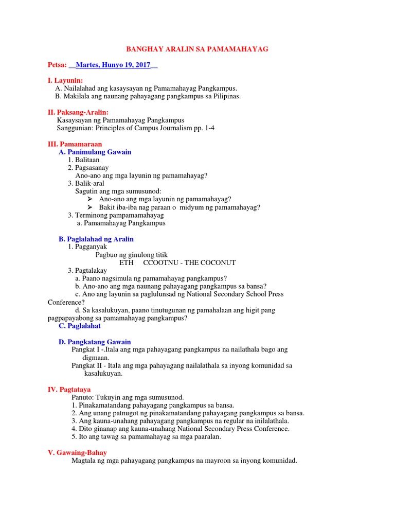 NG SANAYSAY SA PILIPINAS S A PA N A H O N N G PA N A N A K O P N G M G A E S PA N Y O L. Halos isa lang sa bawat 10 Filipino ang nagbabasa ng pahayagan araw araw ayon sa 2013 Functional Literacy Education and Mass Media Survey FLEMMS ng Philippine Statistics Authority. Ang prinsipyo ay kung saan may mga mag-aaralkailangang may pahayagan Noong 1911 sa pamamagitan ng proyekto sa English ng DECS o Department of Education Culture and Sports nailathala ang kauna-unahang pahayagan sa Sekondarya sa dating Manila High School na.