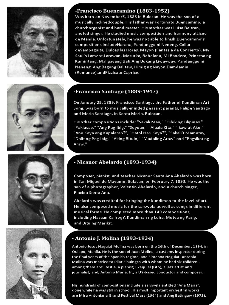 Hibik ng pilipinas composer. Francisco Santiago is known as the Father of the Kundiman and belongs to the Triumvirate of Filipino Composers obtained his Doctorate Degree in American Conservatory of Music in Chicago in 1924. Mar 09 2020 Katapusang Hibik Ng Pilipinasay si Andres Bonifacio. Nov 17 2015 DEPED COPY MUSIC Quarter III 92 NICANOR ABELARDO 1893 1934 Nicanor Abelardo is one of the Triumvirate of Filipino Composers which includes Antonio Molina and Francisco Santiago.