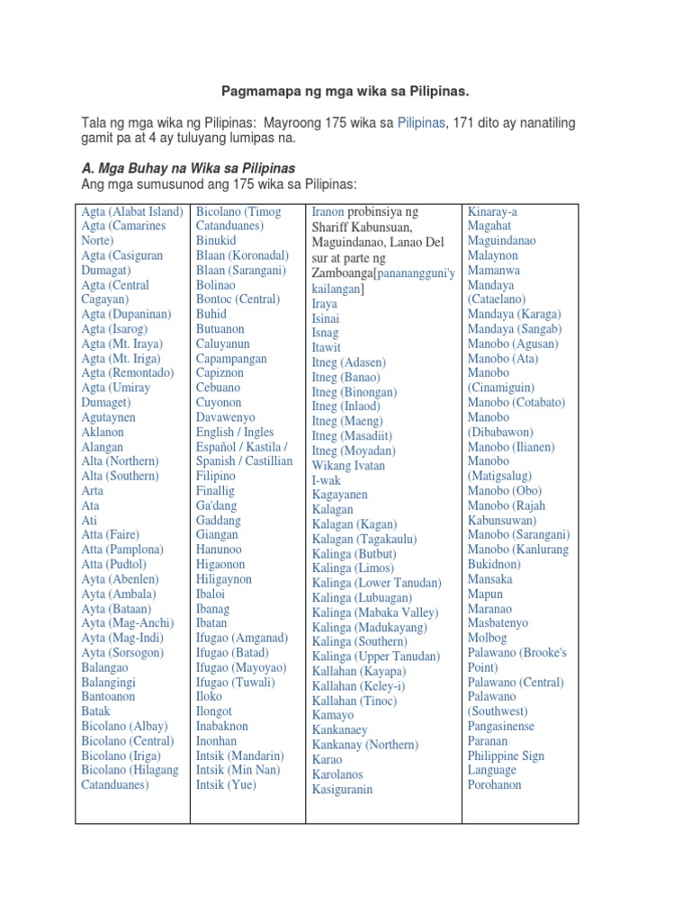 Aug 18 2018 Dahil sa mayroong ibat ibang wika ang pilipinas nagkaroon ng mga kautusan at batas upang magkaroon ng pambansang wika. MGA PANGUNAHING WIKA NG PILIPINAS Tradisyonal na tinatawag na walong pangunahing wika ng bansa ang Bikol Ilokano Hiligaynon Pampanggo Pangasinan Sebwano Tagalog at Waray Samar-Leyte. A Conklin b Thomas at.
