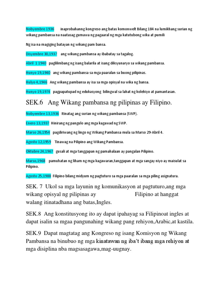 Samantalang nililinang itoy dapat payabungin at pagyamanin pa salig sa umiiral na mga wika ng Pilipinas at sa iba pang mga wika. Sinasalita rin ang mga wikang banyaga tulad ng Ingles Mandarin Fookien Cantonese Kastila at Arabe. Kasalukuyang tawag sa pambansang wika ng Pilipinas.