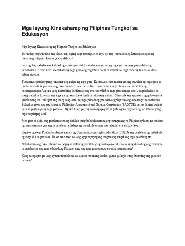 Mga Isyung Kinakaharap Ng Pilipinas Tungkol Sa Edukasyon