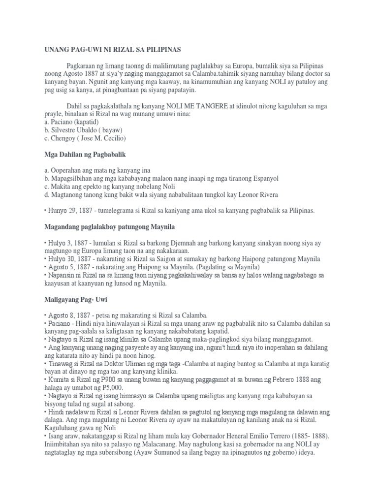 Chapter 6 Reportingx Ang Unang Pagbabalik Ni Rizal Sa Pilipinas At Ang Muling Pag Alis Mga Tumangging Magbalik Si Rizal Sa Pilipinas Paciano Course Hero